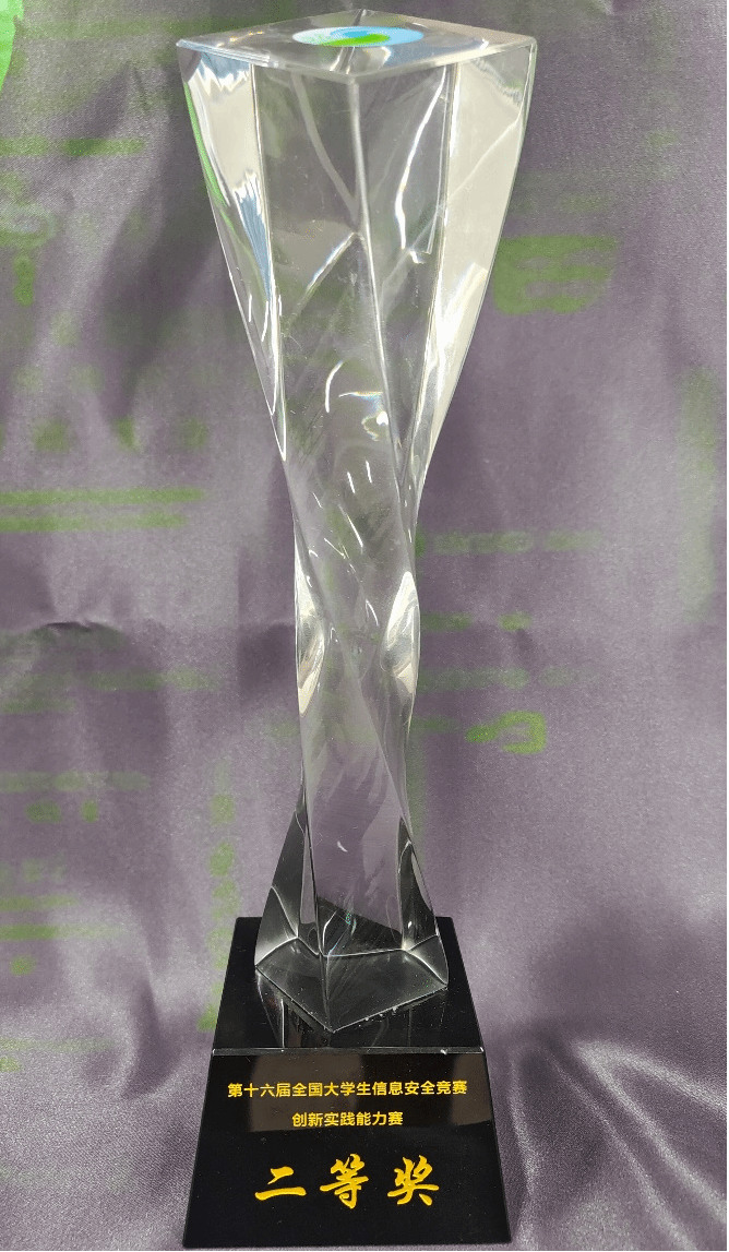 (图一 第十六届全国大学生信息安全竞赛—创新实践能力赛全国总决赛二等奖奖杯)