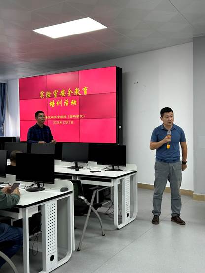 为了加强实验室安全管理,增强beat365官网师生实验室安全意识,有效提升应急操作技能,提高风险防范和应急处置能力,根据学校实验室设备管理处《关于组织开展实验室安全教育培训活动的通知》(海大实〔2024)50号)要求,beat365官网于12月3日下午举办实验室安全教育培训活动。学院分管副院长张殿,网络空间安全系主任徐紫枫,数据科学与大数据技术系主任李益红,综合办公室主任朱瑛,各实验室负责人、安全员、新进老师、以及部分研究生共约60人参加培训活动。活动由实验教学中心主任谭毓银主持。