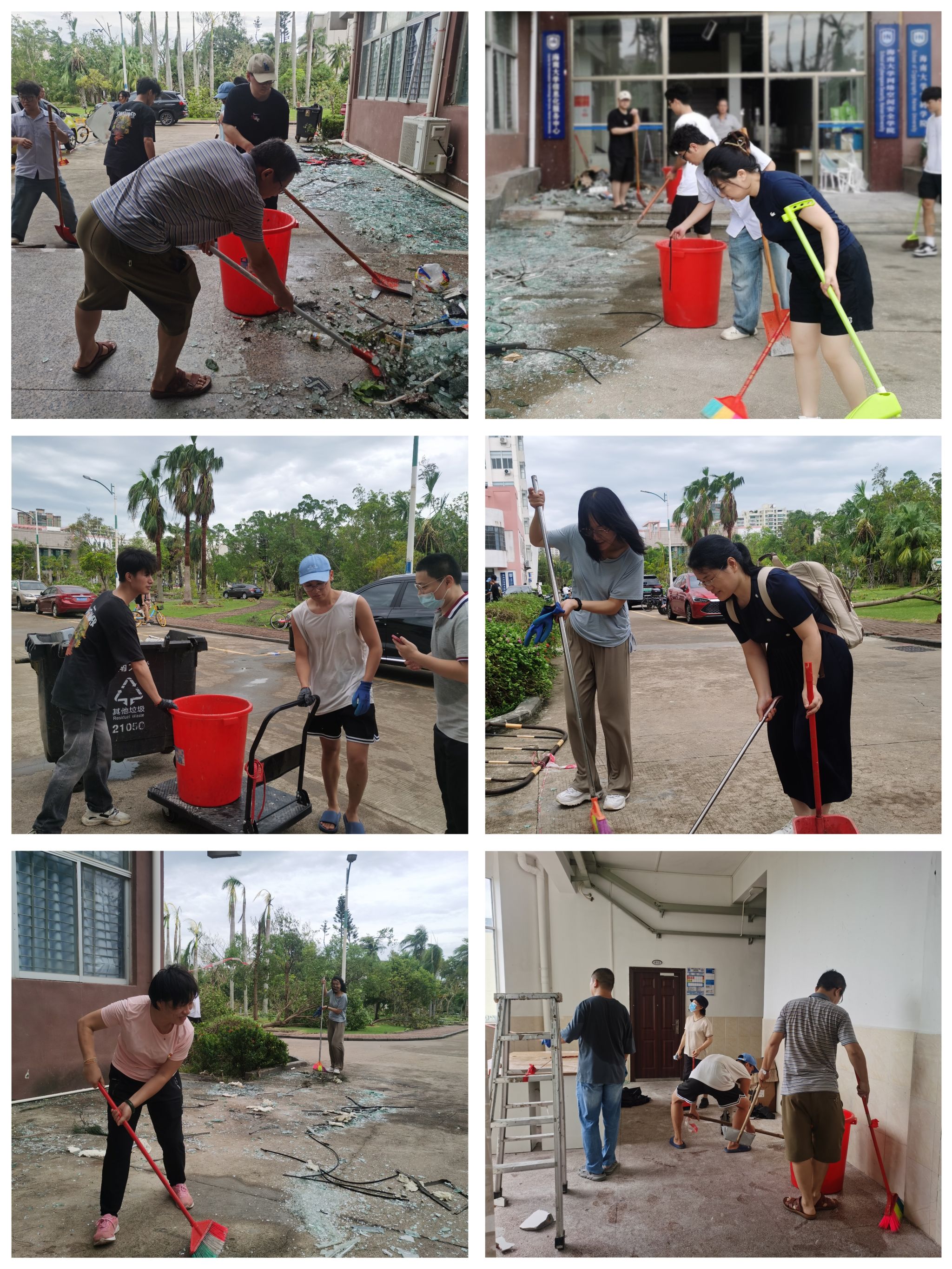 台风无情人有情,师生同心保家园。在学院领导小组的统一指挥下,全院师生一条心,灾后恢复工作开展有条不紊;在书记、院长的带领下,分管副院长各司其职,全体师生干劲十足;在党员先锋队的突击奋战下,不畏艰险,勇于担当,一处处险情被排除;在全体师生志愿者积极参与下,工作有序,责任到人,效率倍增,确保每一层楼每一间实验室排查到位、清理到位、恢复到位。