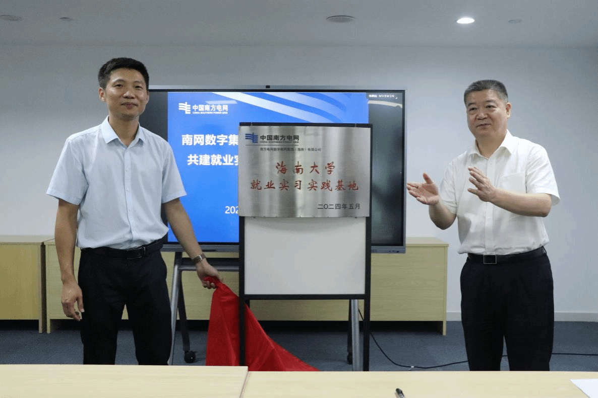 双方举行了座谈,结合学院学科专业优势和公司业务实际,围绕共建就业实习实践基地,就学生实习实践、就业等方面进行深入交流,双方希望以此为契机,整合优势资源,加强校企合作,推动人才培养、科学研究和社会服务等方面全方位合作。座谈会上,双方代表学院党总支书记陈广锐书记、南方电网数字电网集团(海南)有限公司董事长顾志东签订了共建就业实习实践基地协议,并为基地揭牌。