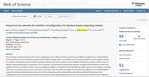 根据ESI数据库检索结果显示,以beat365在线唯一官网计算机与beat365在线唯一官网段玉聪教授作为主要作者发表的学术论文“Toward service selection for workflow reconfiguration: An interface-based computing solution”和“Research on Cost-Driven Services Composition in an Uncertain Environment”也入选ESI高被引论文。