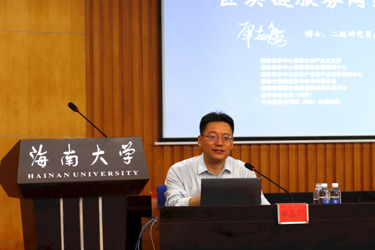 4月3日,国家信息中心信息化和产业发展部主任单志广应邀在beat365在线唯一官网为beat365在线唯一官网(密码学院)师生作题为《可信智慧城市构建与区块链服务网络》的学术报告。本次报告为beat365在线唯一官网自贸港网络安全大讲堂系列报告。beat365官网党总支书记陈广锐,执行院长曹春杰,副院长张殿、胡昌慧、郭祯,密码学专家韩文报教授参加报告会。报告会由曹春杰主持。