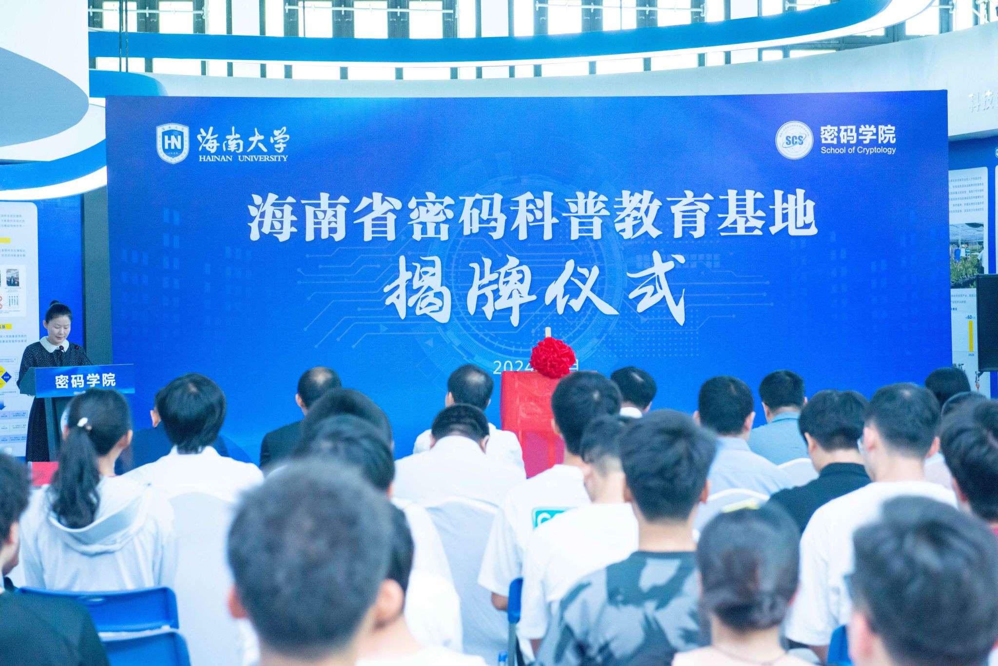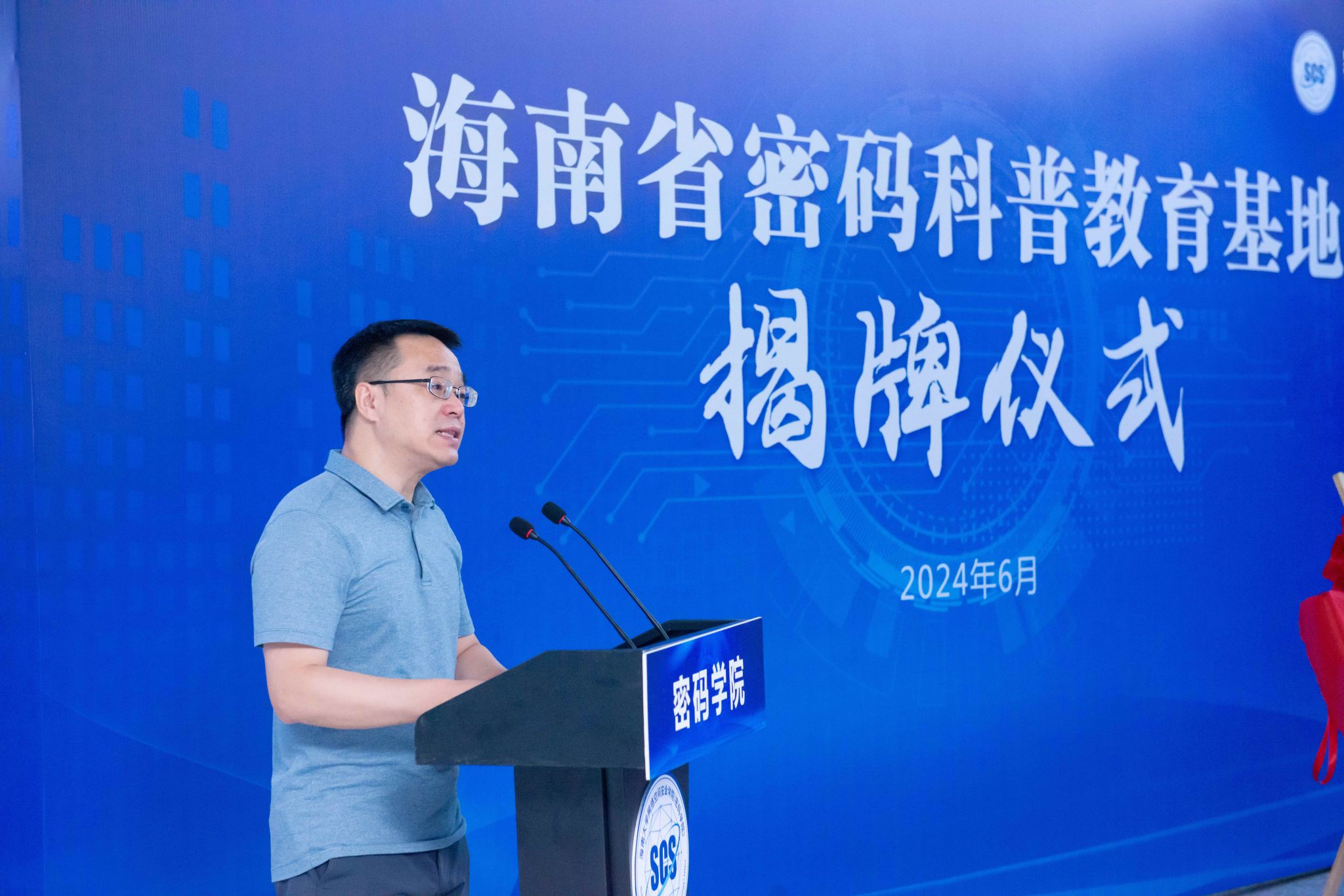2024年6月6日,beat365在线唯一官网举行海南省密码科普教育基地揭牌仪式,海南省国家密码管理局局长蔡国杰、商用密码管理处处长陈川,海南省科学技术协会二级巡视员吴钟海、科普部副部长梁婧俏,海南省科学技术厅政策法规规划处副处长覃业敏,beat365在线唯一官网党委常委、副校长刘谦、科学技术发展院副院长陈伟、beat365在线唯一官网(密码学院)党总支书记陈广锐等出席活动。