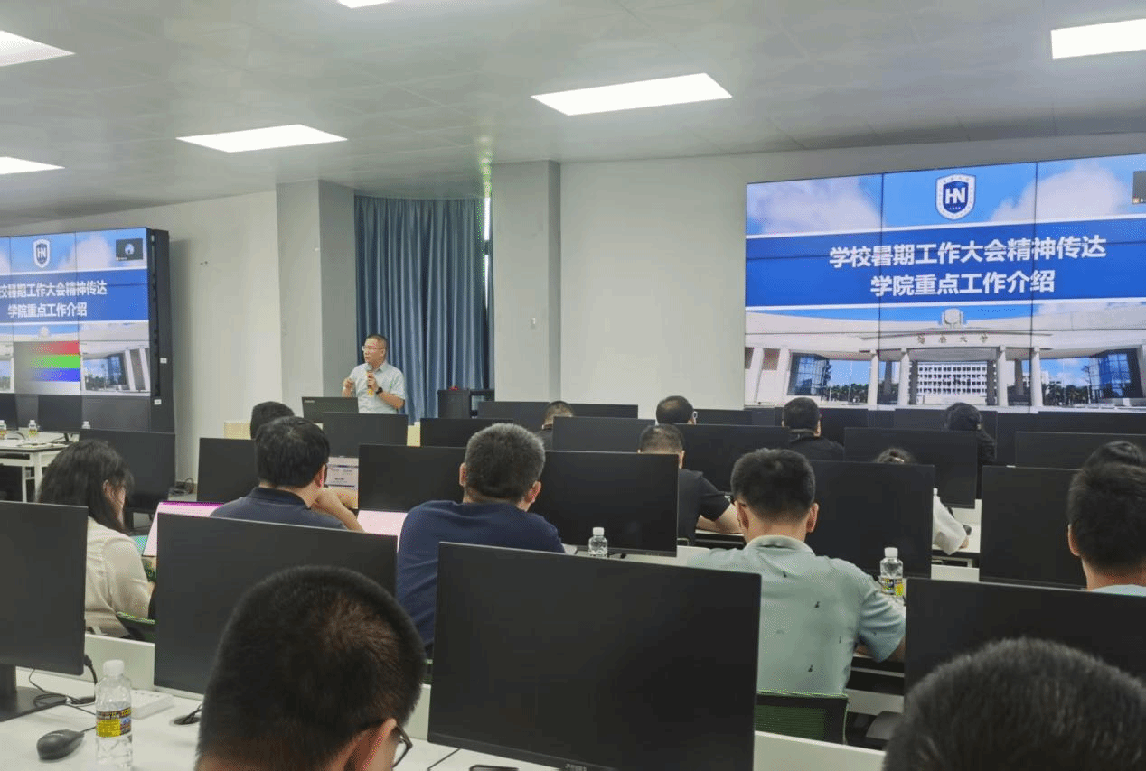 会上,曹春杰院长传达学校暑期工作会议精神,介绍了学校以创建世界一流大学为发展目标下在学科建设、人才培养、科研创新、社会服务等方面的最新战略规划与工作要求,并结合推进一流学科突破计划情况,强调全体教职工要进一步提高政治站位,将学校的发展目标与学院的工作部署精准对接,推动学院高质量发展取得新的成效。